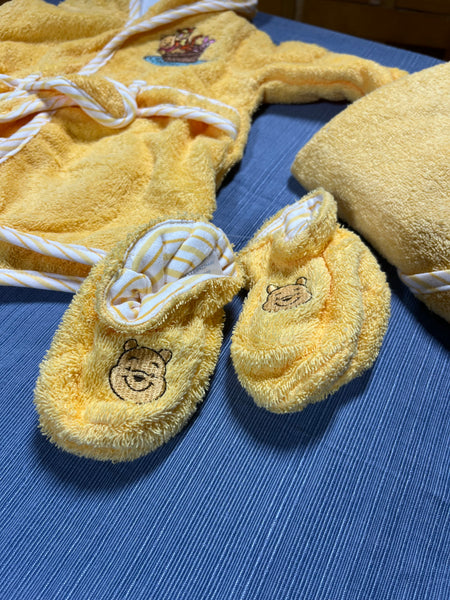 A- Winnie the Pooh Bath Set: Robe, Towel and Slippers (Size 0-9 months)