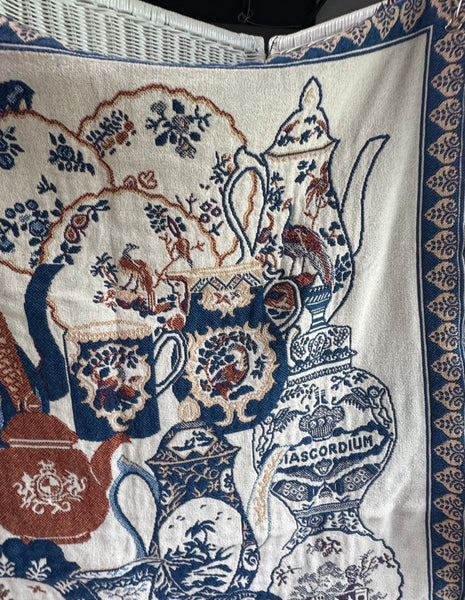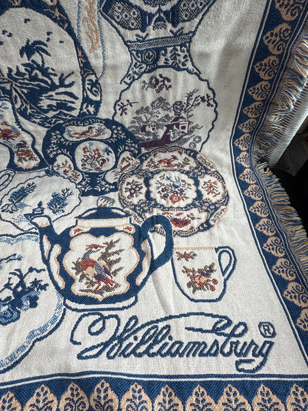 (C) Goodwin Weavers Colonial Williamsburg Floral Teapot Tapestry Style Fringed Blanket