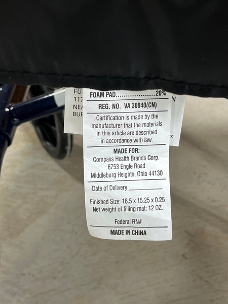 22"x30", 17" seat height without cushion. With cushion seat height, 20". 36: height including handles.  Comes with seat cushion by Briggs Healthcare. Normal wear. Picture of similar item shown for comparison.