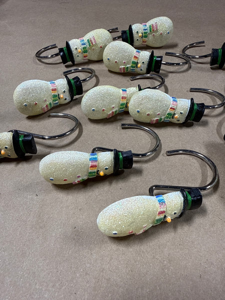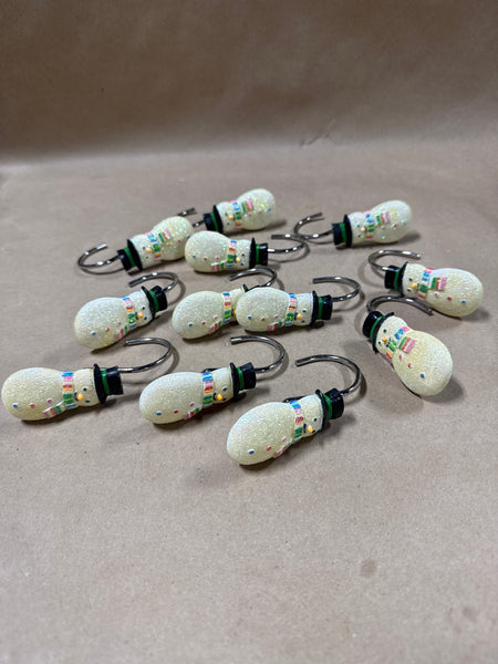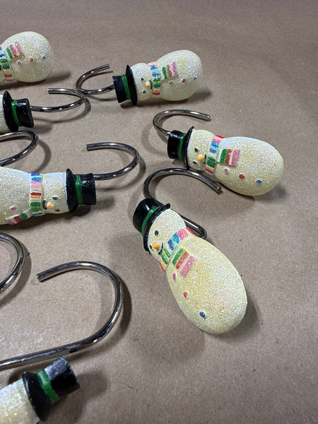 Glittery Snowman Shower Curtain Hooks — 12 Hooks