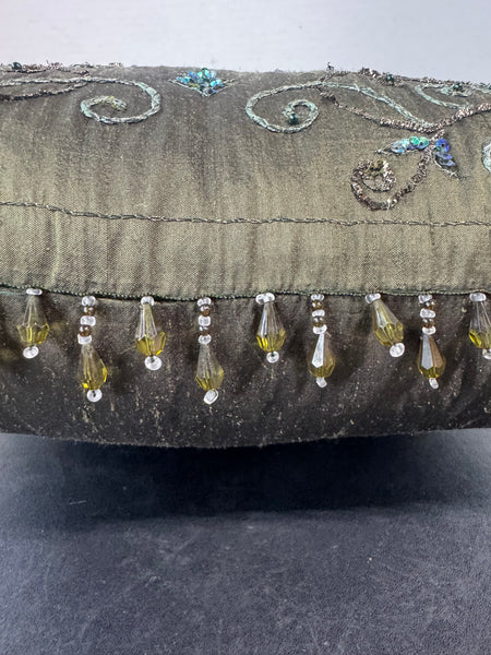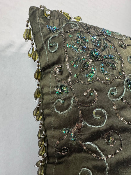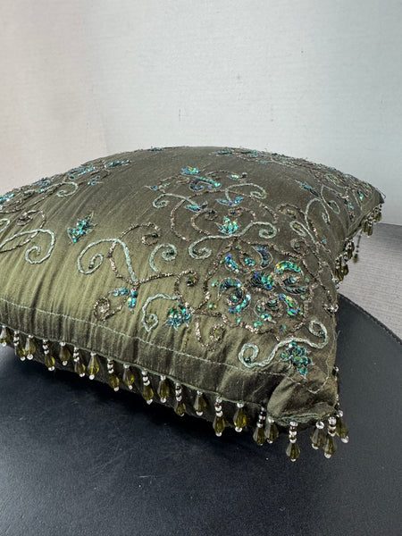Olive Green Bead & Sequin Embellished Throw Pillow
