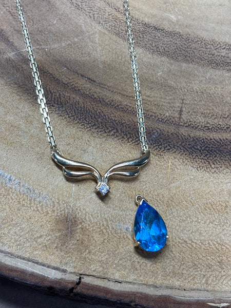14K Gold Necklace with Blue Topaz/Diamond Removable Pendant