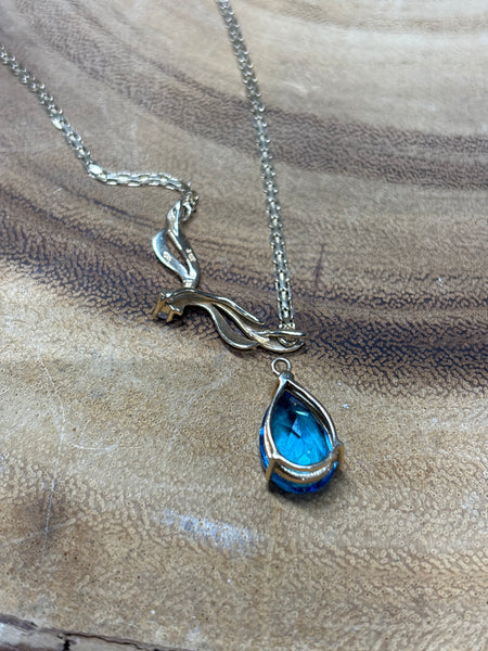 Necklace can be worn with or without blue topaz.  It slides off the back.  Can also interchange with another pendant.