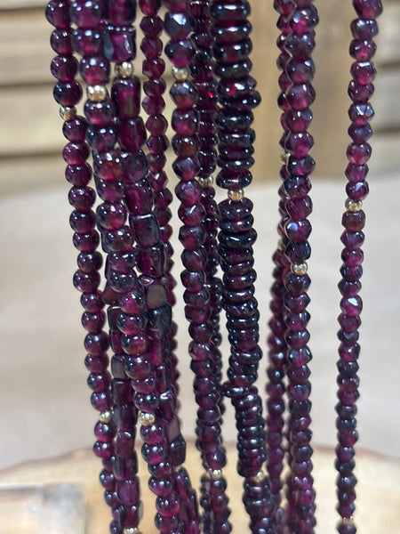 Six Strands of Garnet & Gold Beaded Necklaces