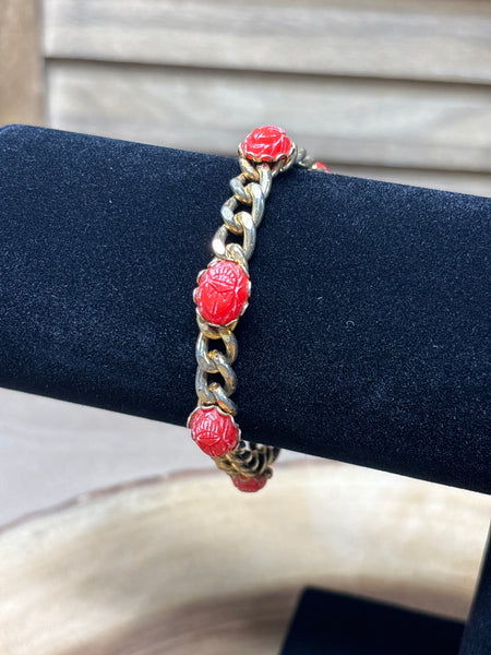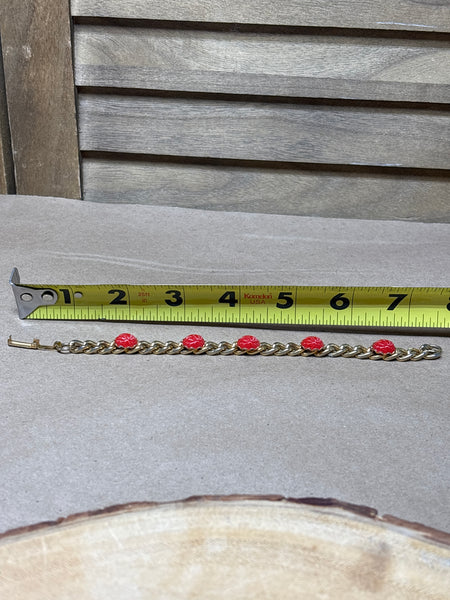 Vintage Gold Tone Bracelet with Coral Scarabs