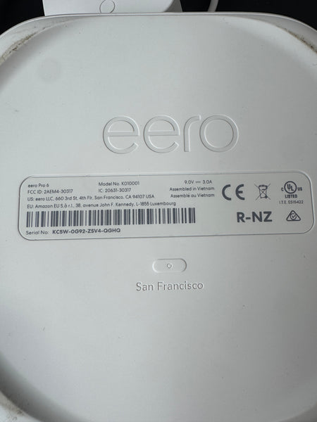 DETAILS: Eero Pro 6 Mesh WiFi Router: Model K010001. Powers on—-no further testing