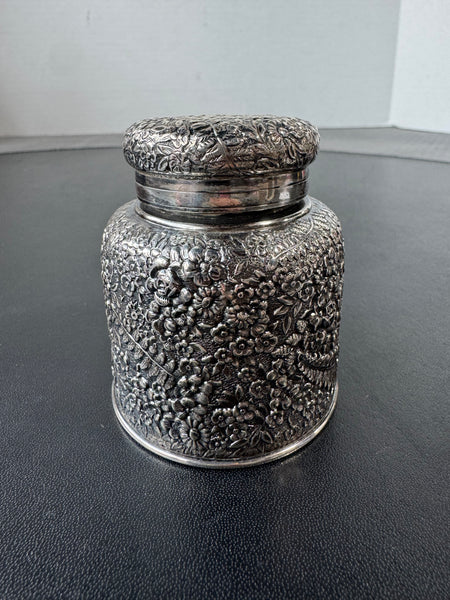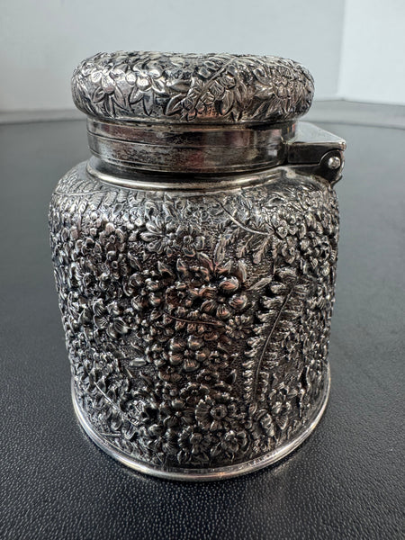 Tiffany & Co. Sterling Silver Engraved Floral Embossed Inkwell