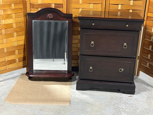 Cabinet: 24"x16", 30"H. Mirror: 22"x32". Normal wear