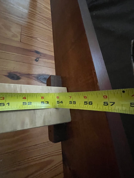 58 1/2"W. 72" poster height. 21 1/2" Footboard height; 51" headboard height. 55" width between side rails. Comes with rails and slats.