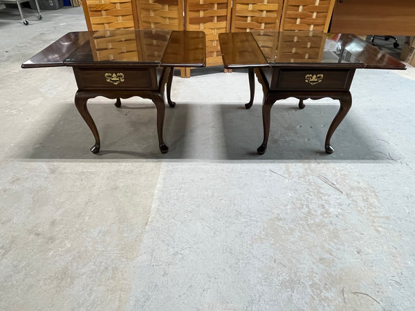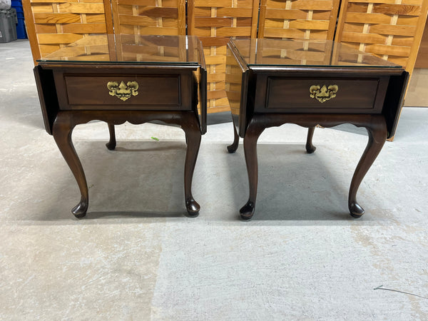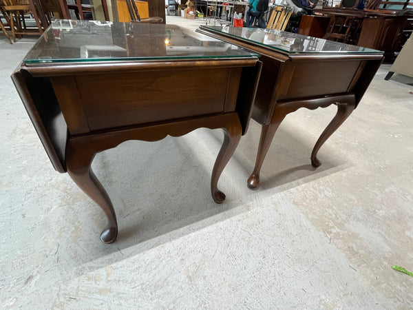 Harden Pair of Drop Leaf End Tables with Protective Glass
