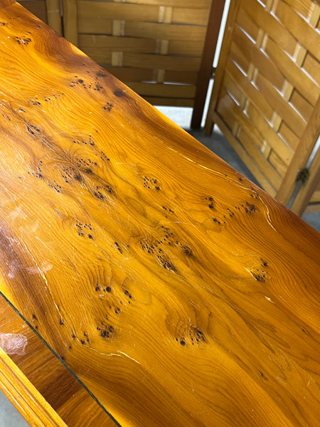 48"x11", 34"H.  Normal wear. DRAWERS ARE FAUX; DO NOT OPEN.