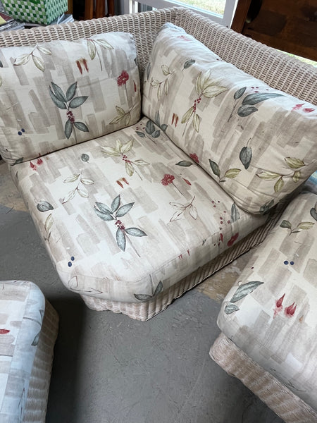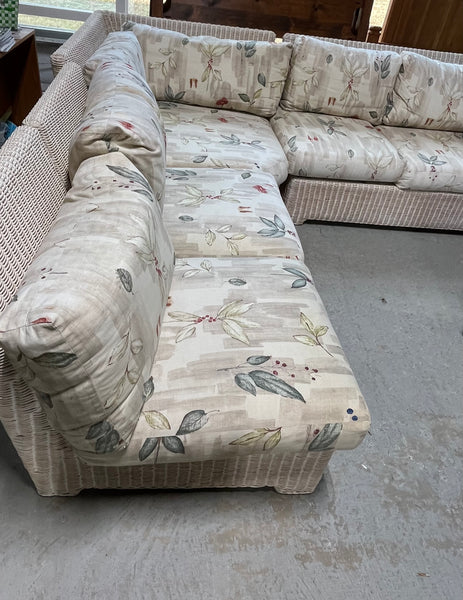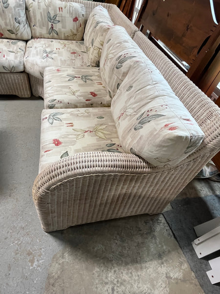 Lexington Casual Off White/Cream Wicker/Rattan Sectional Sofa with Glass Top Table