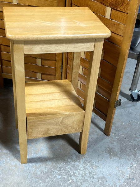 15"x12", 26"H. Appears to have been assembled incorrectly- round side of top faces back, and flat side and drawer face forward-see photos.