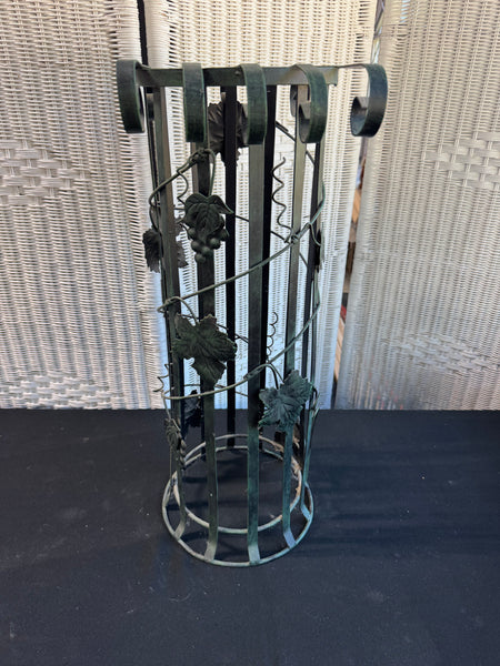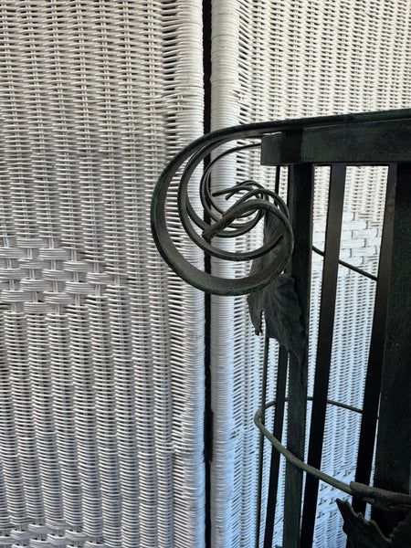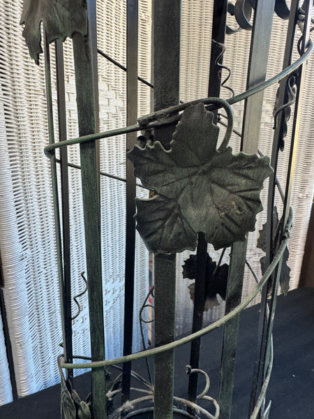 Green Vintage Metal Scroll Grapevine Column Plant Stand