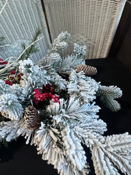 Assorted Lot of Christmas Garland, Candle Rings & Floral Stems