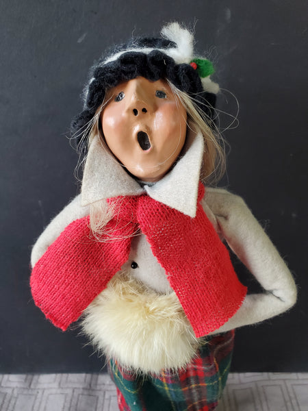 (G) Byers' Choice Carolers Signed "Woman with Fur Muff" Figurine