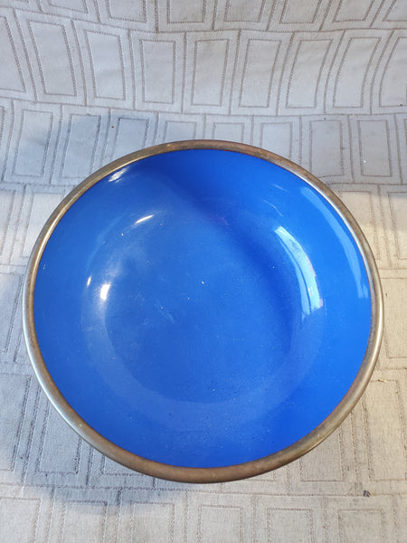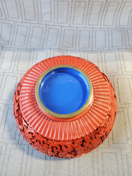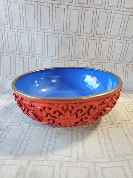 Asian Inspired Red Cinnabar Bowl with Blue Enamel Interior