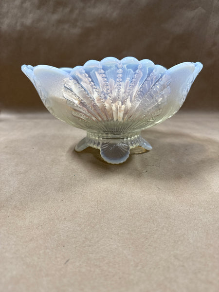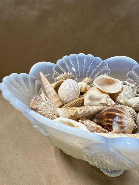 Mosser Opalescent White Glass Berry Sering Bowl Shell Pattern With Shells