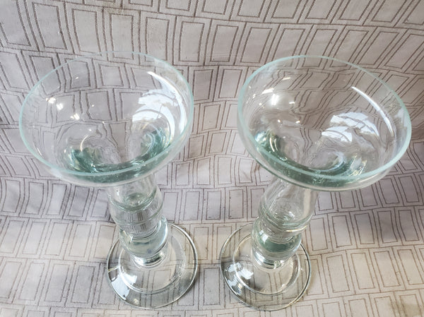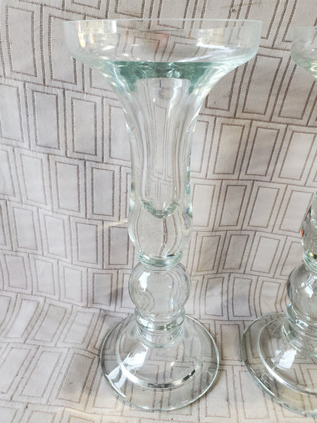 Pair of Heavy Clear Glass Candlestick Holder