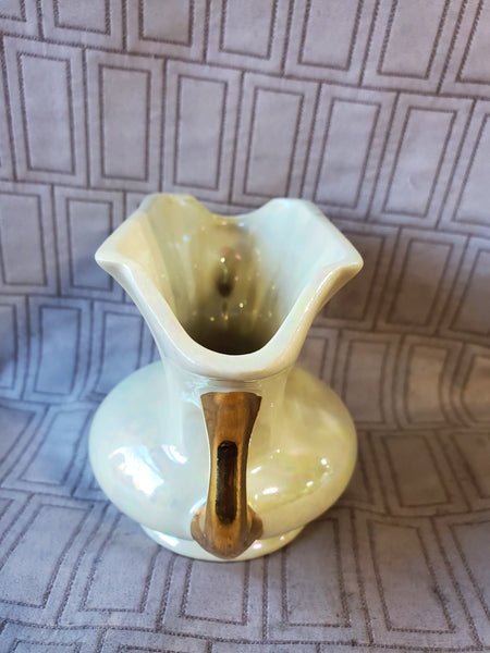 Pearl Iridescent 22K Gold Painted Double Handled Vase