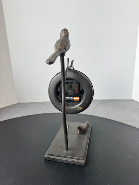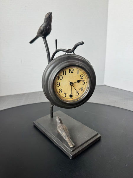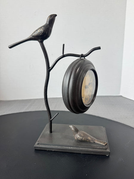 Rustic Metal Birds Stand with Hanging Clock