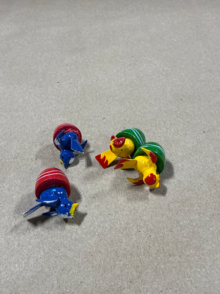 Set Of 4 Hand Painted Mexican Folk Miniature Birds