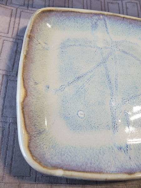 Signed Blue Glazed Pottery Trinket Tray