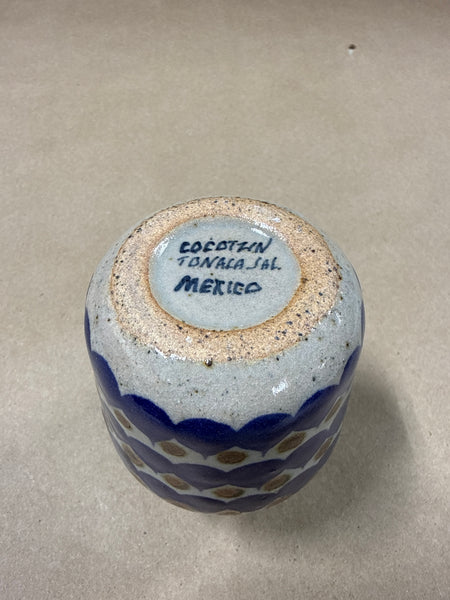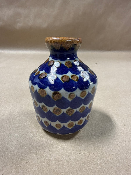 Small Blue And Brown Bud Vase Made In Tonala Mexico