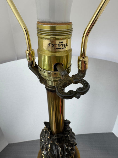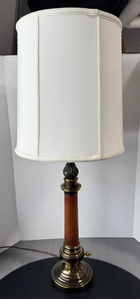 Stiffel Torchiere-Style Table Lamp with Brass Accents & Fluted Wooden Column (WORKS)