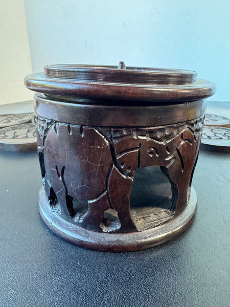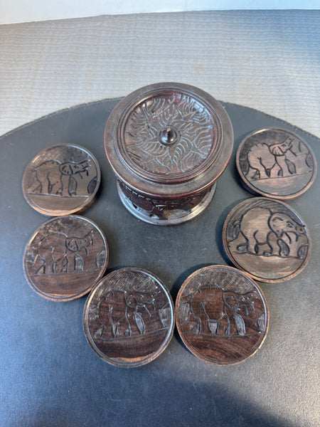 6-Piece Hand Carved Wooden Elephant Coasters in Box