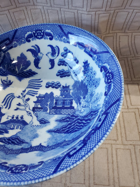 Asian Inspired Blue and White Serving Bowl