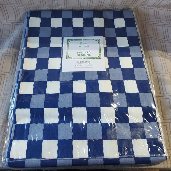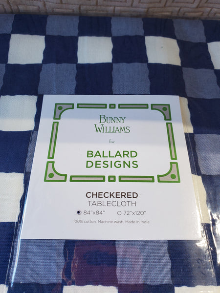 Bunny Williams for Ballard Designs 100% Cotton Blue Checkered Tablecloth UNOPENED (3 AVAILABLE PRICED INDIVIDUALLY AT $25 EACH)