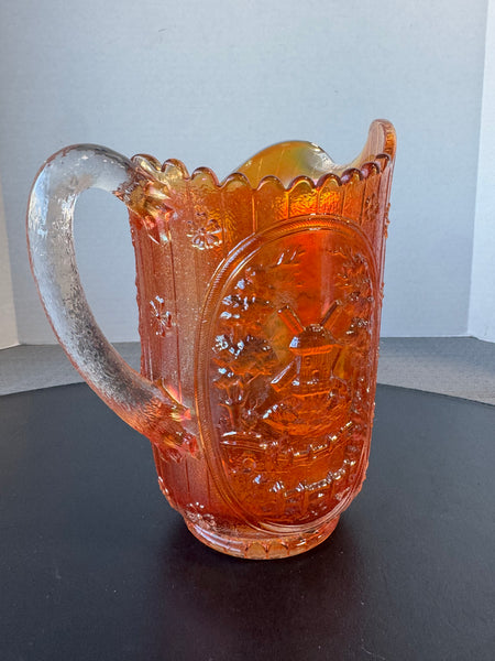 (C) Imperial Glass Vintage Marigold Carnival Glass Windmill Pitcher