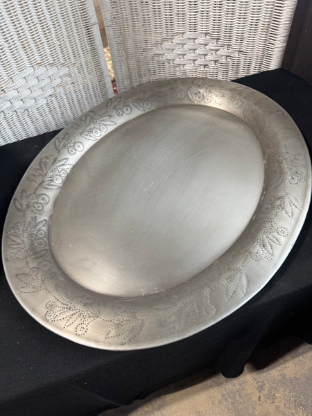 Crate & Barrel Silva XL Oval Floral Punched Metal Covered Turkey Platter