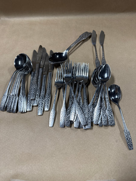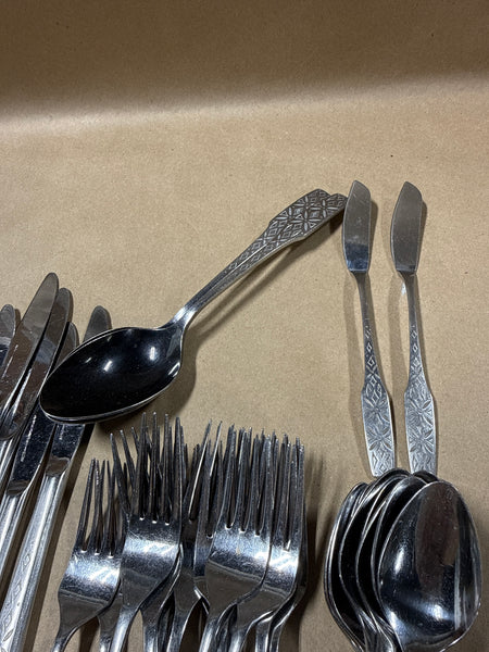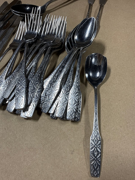 Epic Stainless Steel Diamond Pattern Flatware — 46 Pieces