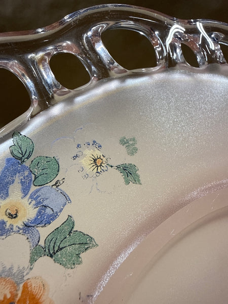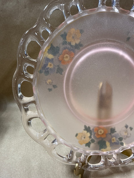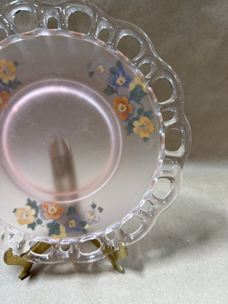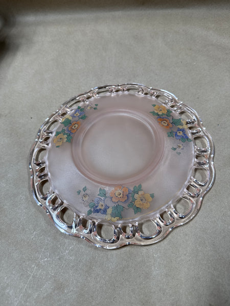 Frosted Pink Lace Plate With Reverse Painting Flowers