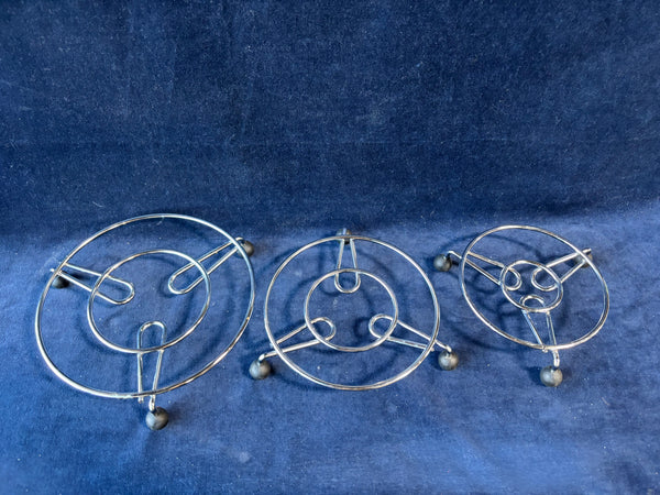 Lot Of Round Chrome Trivets with Rubber Ball Feet (3)