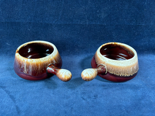 Pair Of McCoy Brown Drip Glaze Soup Bowls With Handles