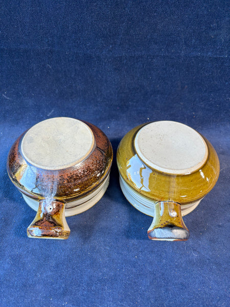 Pair Of Speckled Handled Soup Bowls