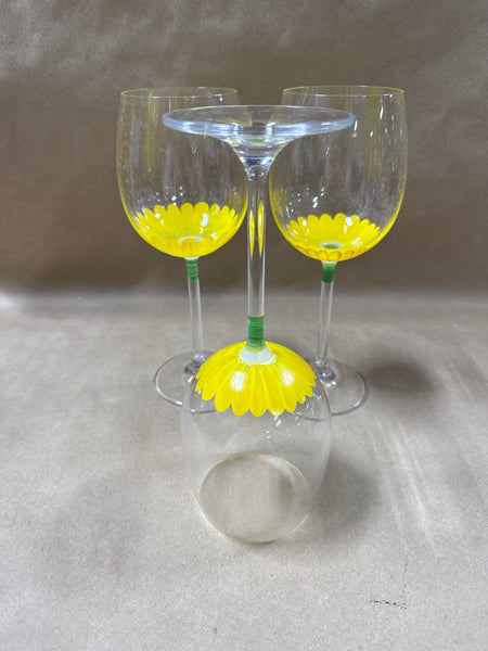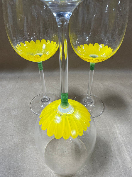 Set Of 3 Handpainted Sunflower Wine Glasses