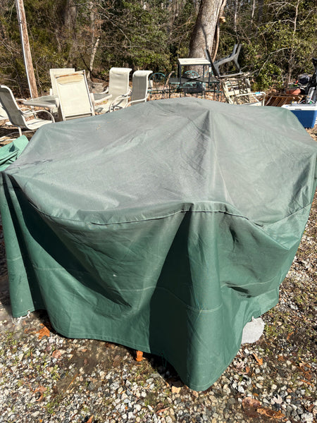 This set is in very good condition, appears to have been used indoors. Table size, 5‘ x 29“. Chairs, 25” x 22” x 38”, seat height 19 inches. Cover included. See photos.