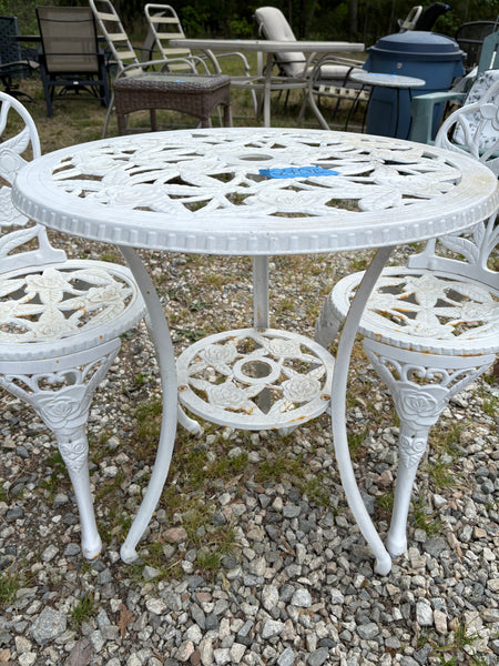 A-Cast Metal White Garden/Patio Bistro Set, Three Pieces