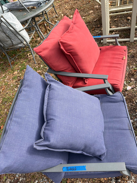 Pair of Outdoor Aluminum Rocking Chairs w/Cushions and an Ottoman