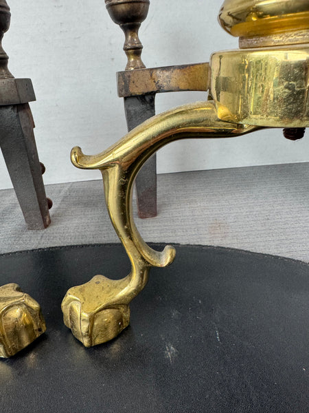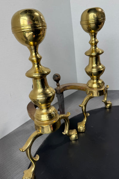 Pair of The Harvin Co. Virginia Metalcrafters Vintage Brass Clawfoot Andirons