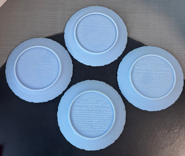 4-Piece Fenton Blue Satin Bicentennial Complete Commemorative Plate Set