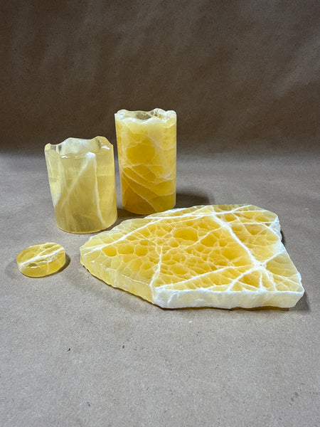 4 Piece Honeycomb Calcite Candle Holders And Honeycomb Calcite Slabs