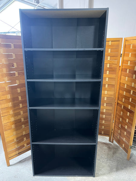 A-Black Particle Board Bookcase, card board backing