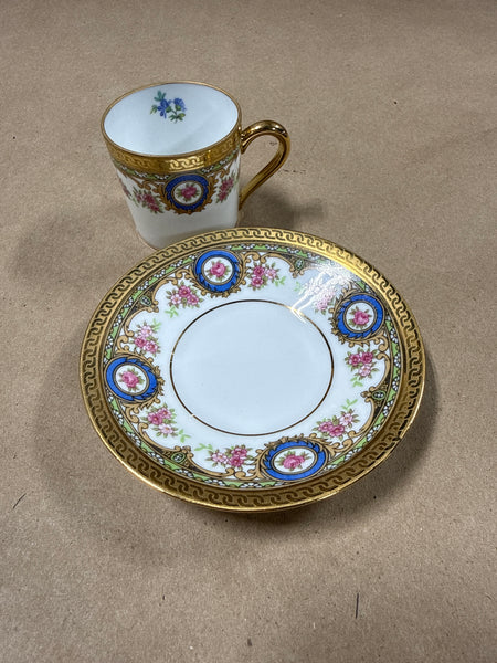 (A) Legle Limoges France Pink Roses Teacup And Saucer — Blue Inner Flower