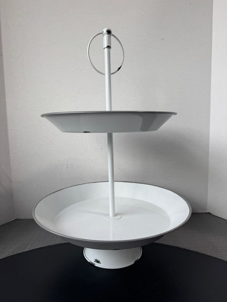 Ashland Farmhouse Style Distressed White Metal 2-Tier Display