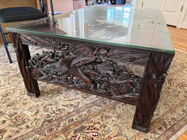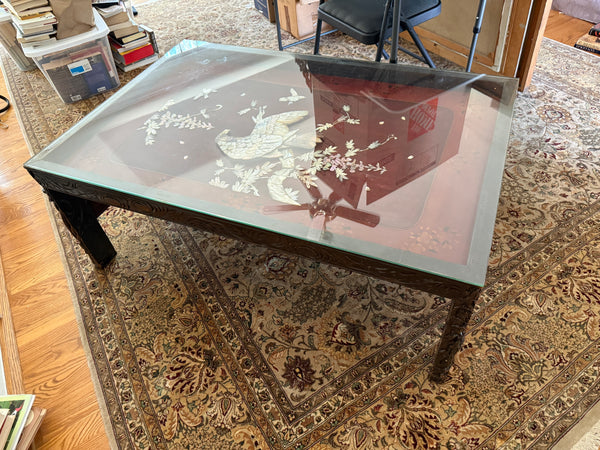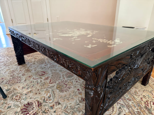 Asian Carved Coffee Table with Mother of Pearl Inlay - SEE DESCRIPTION